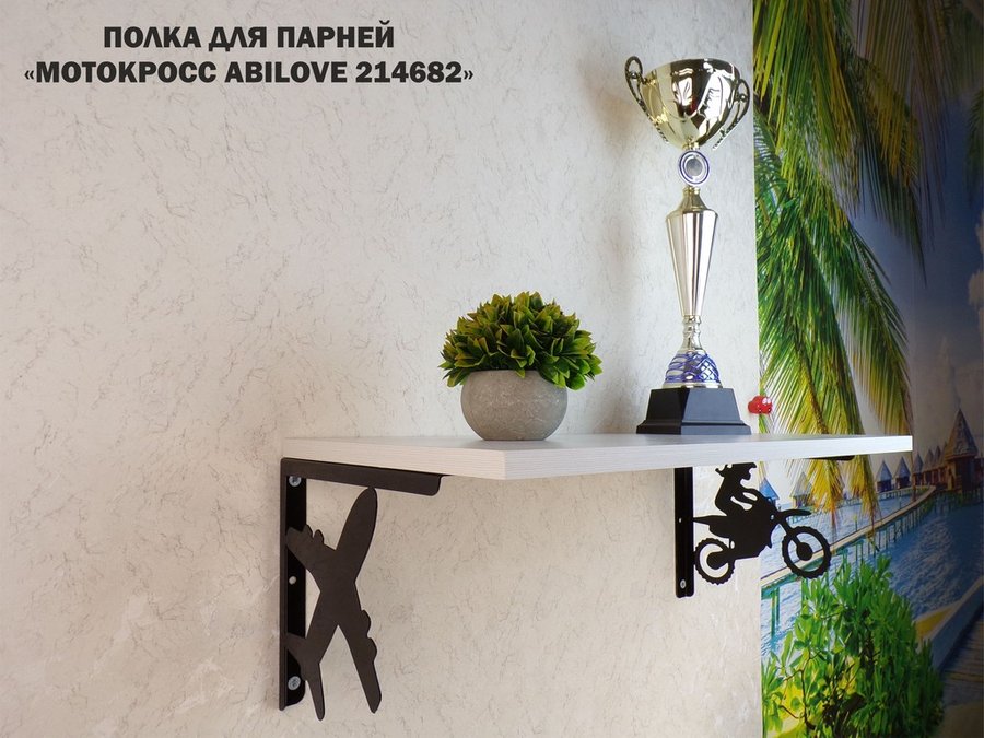 Полка для парней "МОТОКРОСС ABILOVE-214682" для кубков и аксессуаров, сосна выбеленная, 30х60см