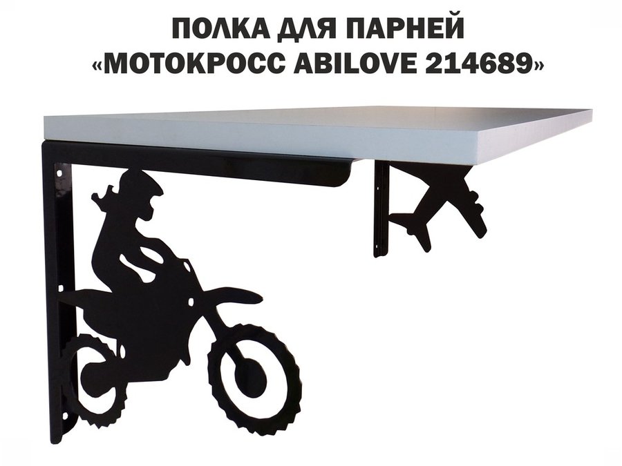 Полка для парней "МОТОКРОСС ABILOVE-214689" для кубков и аксессуаров, белая, 30х60см