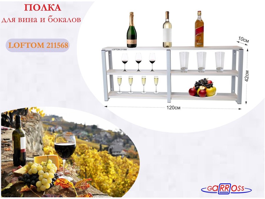 . Полки для вина и бокалов "LOFTOM" 3 уровня