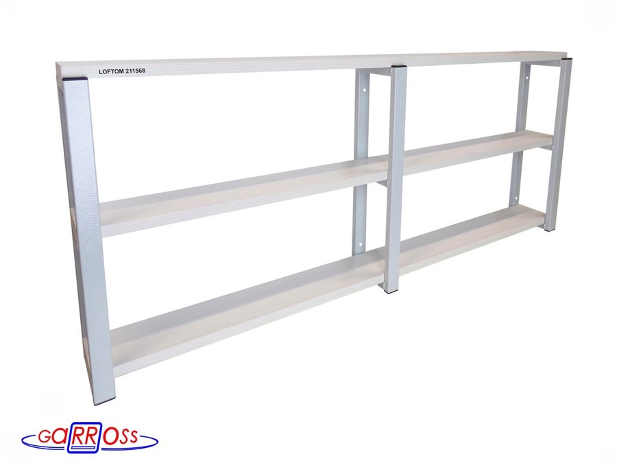 Полка для вина и бокалов, высота 42см, 3 уровня, размер 10х120см, серая "LOFTOM 211568" сосна