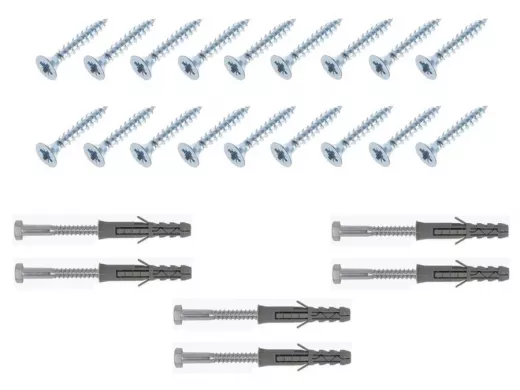 - Полка надежно крепится к стене при помощи шурупов с дюбелями, идущих в комплекте