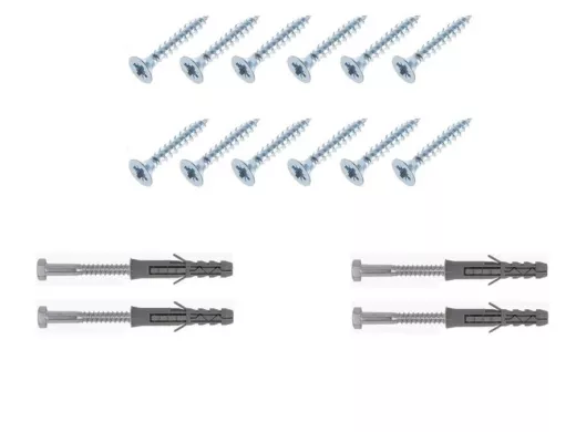 - Полка надежно крепится к стене при помощи шурупов с дюбелями, идущих в комплекте