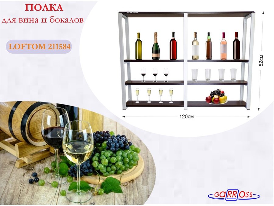 . Полки для вина и бокалов "LOFTOM" 4 уровня