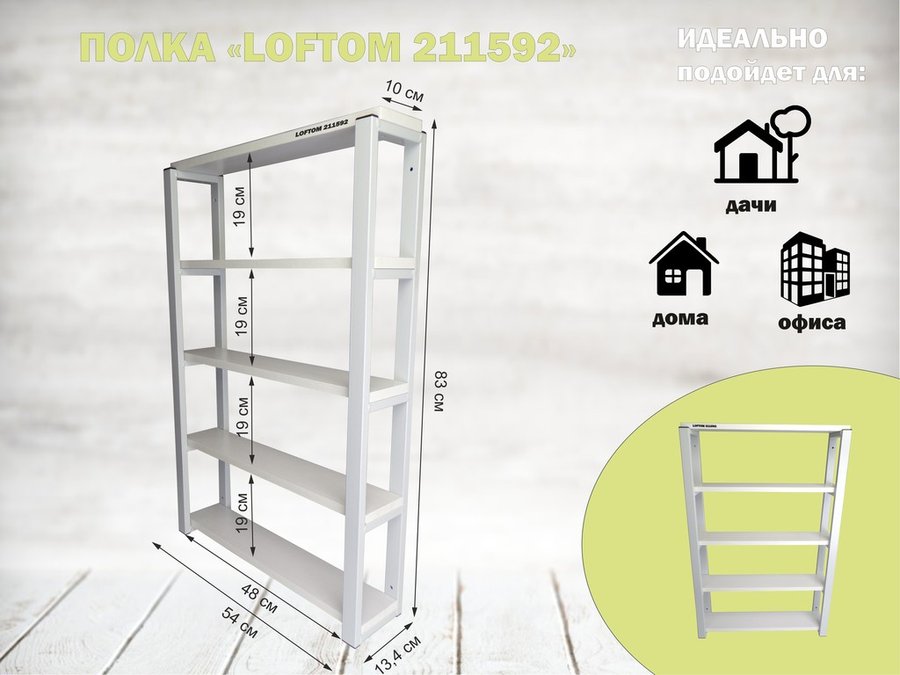 В корзину Купить в 1 клик Полка для вина и бокалов, высота 82см, 5 уровней, размер 10х120см, серая "LOFTOM 211661" салатовый