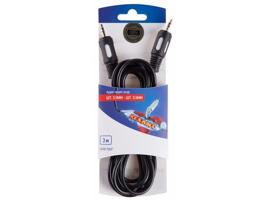 В корзину Купить в 1 клик Кабель AUX (3,5 мм-3,5 мм) 3м (GOLD) REXANT