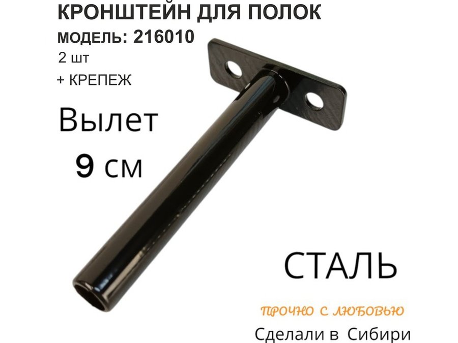 Кронштейн для скрытого крепления полок, 12х90мм, черный, в наборе 2шт "SVORKAMAX-216010" без полки