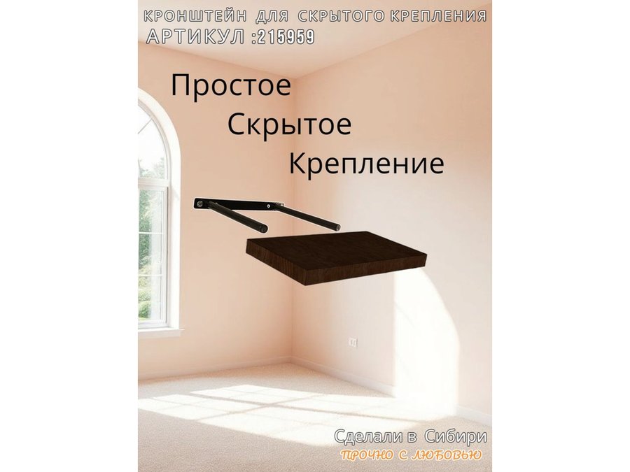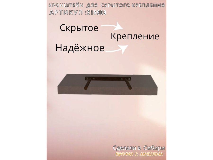 - Кронштейн предназначен для скрытого крепления полок, изготовленных из различных материалов: МДФ, ДСП, дерево, пластик.