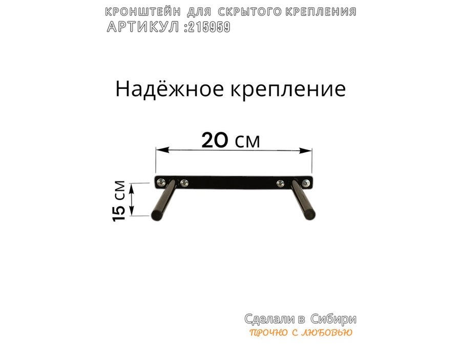 Кронштейн для скрытого крепления полок, 2х15см, черный, в наборе 1шт "SVORKAMAX-215959" ширина 20см