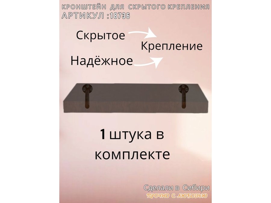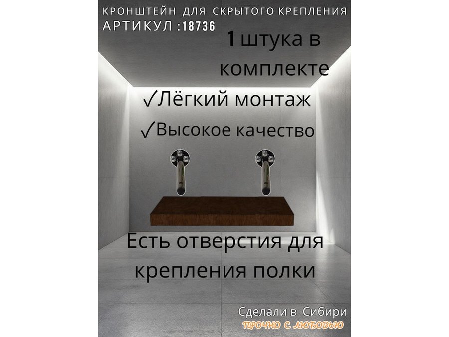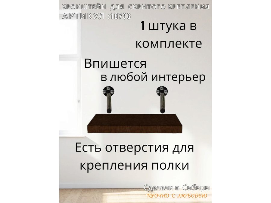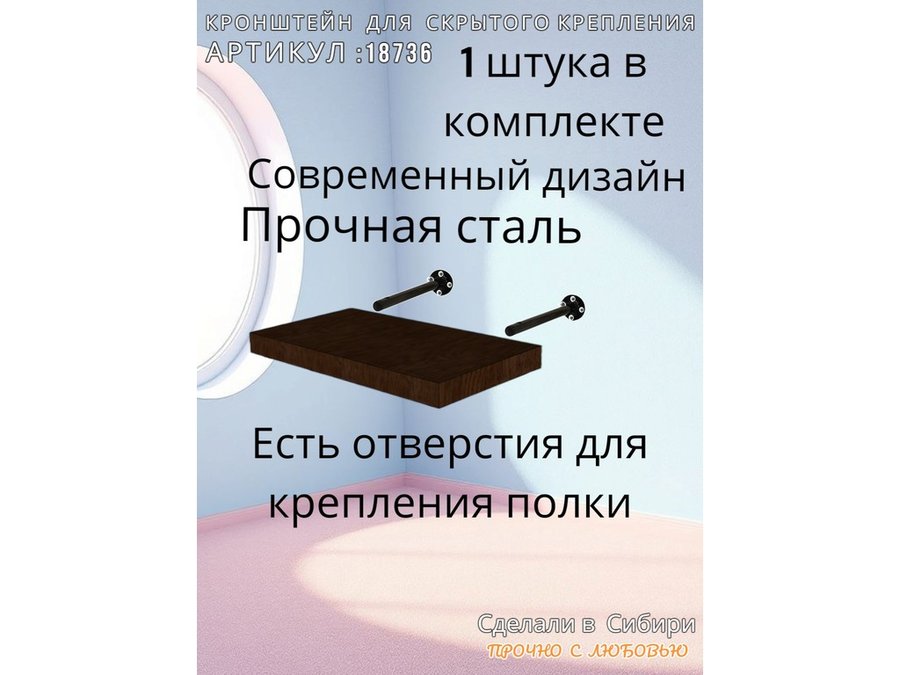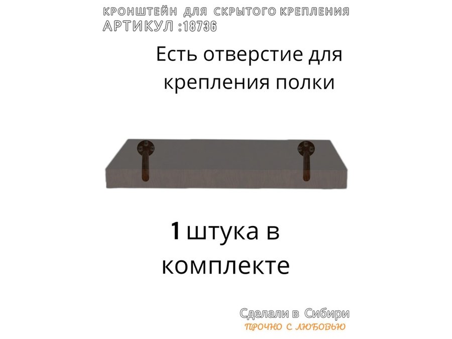 • Кронштейн предназначен для скрытого крепления полок, изготовленных из различных материалов: МДФ, ДСП, дерево, пластик.