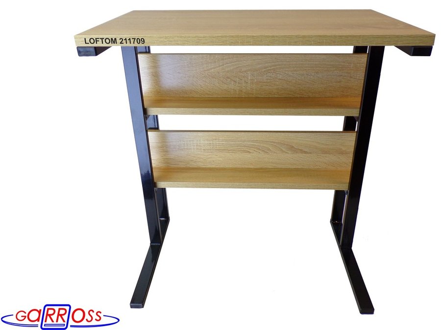Столик приставной, 59см, черный "LOFTOM 211709" прикроватный стол журнальный с двумя полками, дуб