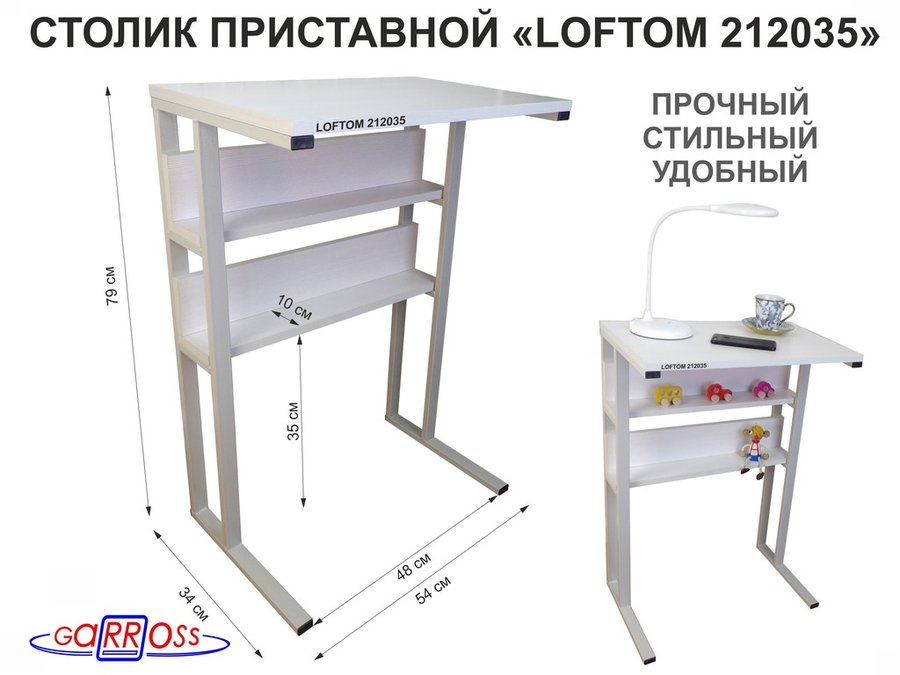 В корзину Купить в 1 клик Столик приставной, 79 см, серый "LOFTOM 211738" прикроватный стол журнальный с двумя полками, дуб