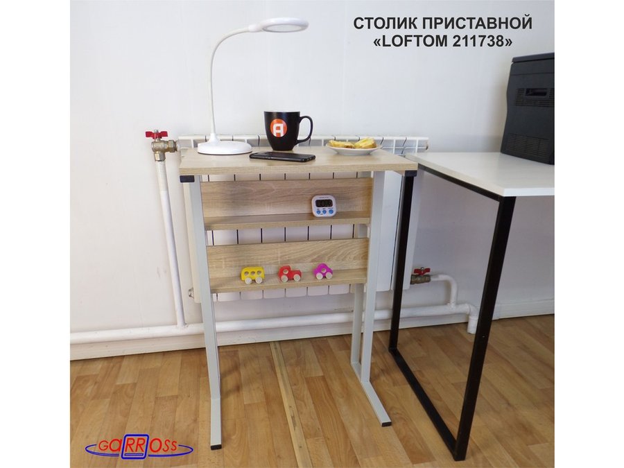 Столик приставной, 79 см, серый "LOFTOM 211738" прикроватный стол журнальный с двумя полками, дуб