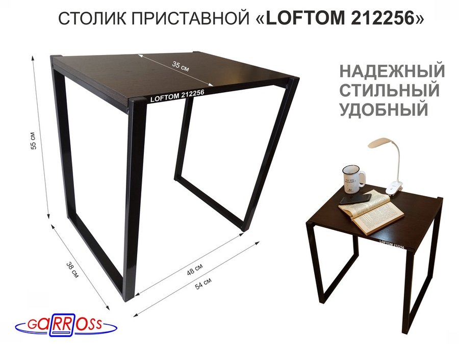В корзину Купить в 1 клик Столик приставной 55см, черный "LOFTOM 212256" прикроватный стол журнальный, венге