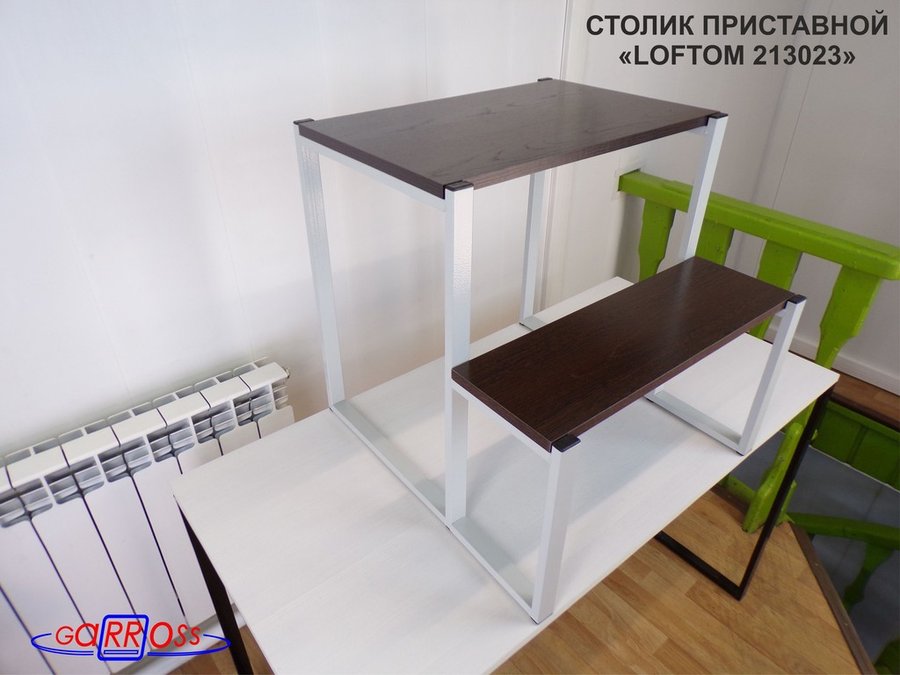 Журнальный приставной столик LOFTOM прекрасно впишется в любое пространство. Столик украсит Вашу гостиную, спальню или коридор. Можно использовать как придиванный кофейный столик, прикроватный столик для завтрака или как стол журнальный приставной. Важно отметить, что прикроватный столик занимает немного пространства, поэтому ему найдётся место даже в самой малогабаритной квартире. Прикроватный/журнальный столик, в стиле Лофт, может быть использован в качестве подставки для цветов и книг, места для работы, места для хранения мелочей.  Столик, без труда, можно перенести в любое место.