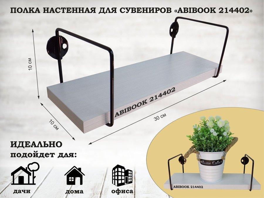 В корзину Купить в 1 клик Полка настенная для сувениров 10x 30 см белый шагрень ABIBOOK-214398