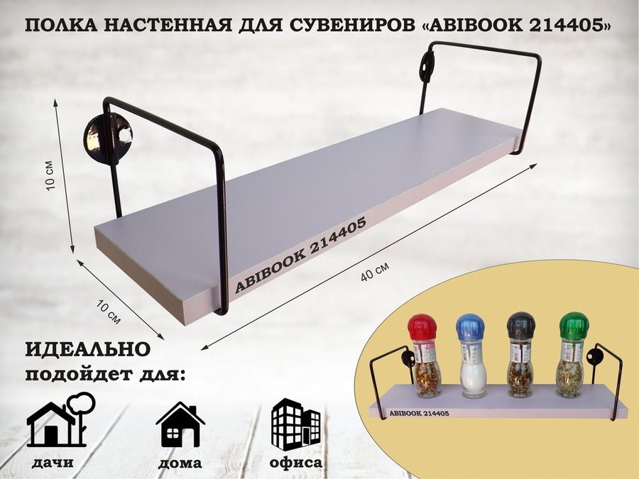 В корзину Купить в 1 клик Полка настенная для сувениров 10x 60 см белый шагрень ABIBOOK-214412