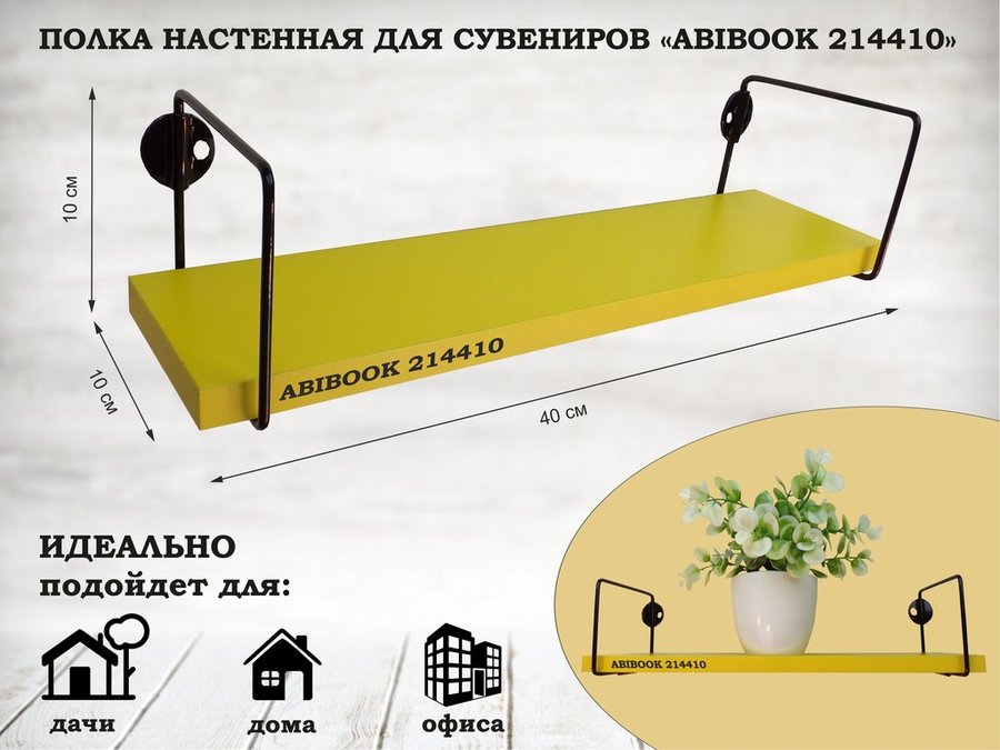 В корзину Купить в 1 клик Полка настенная для сувениров 10x 40 см желтый ABIBOOK-214410