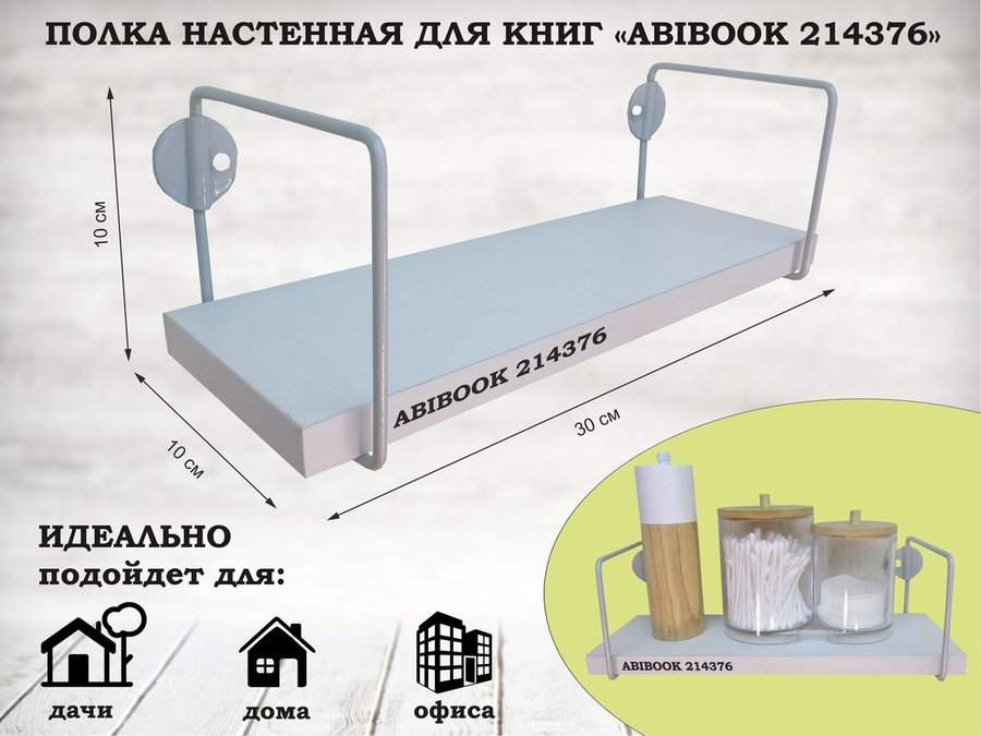В корзину Купить в 1 клик Полка настенная для сувениров 10x 30 см белый шагрень ABIBOOK-214376