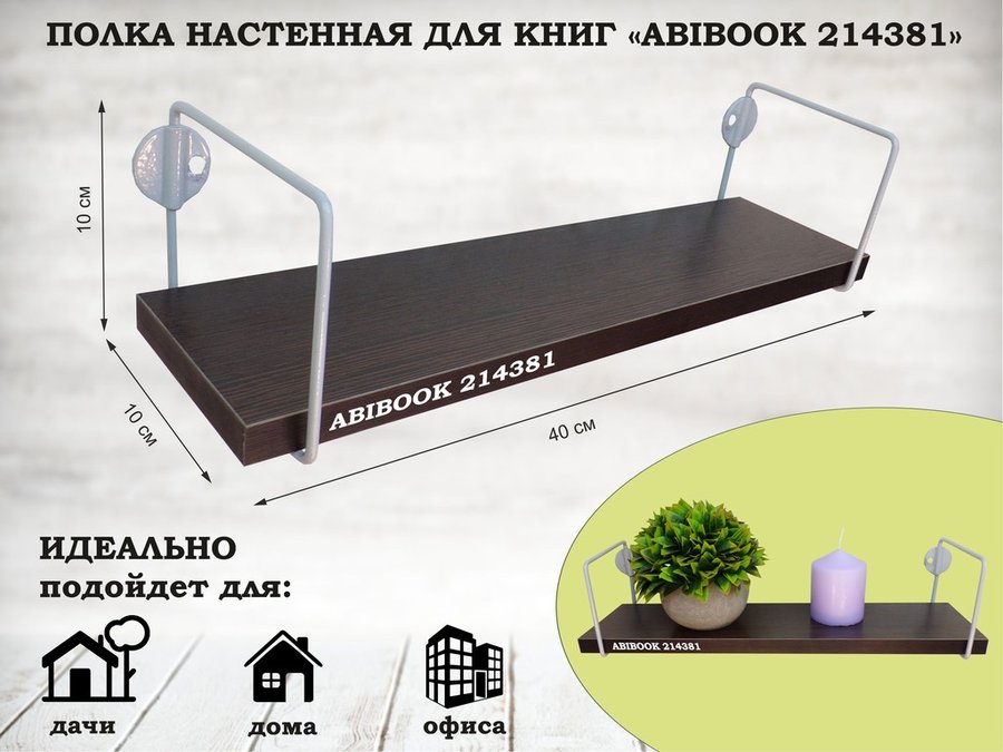 В корзину Купить в 1 клик Полка настенная для сувениров 10x 40 см венге ABIBOOK-214381