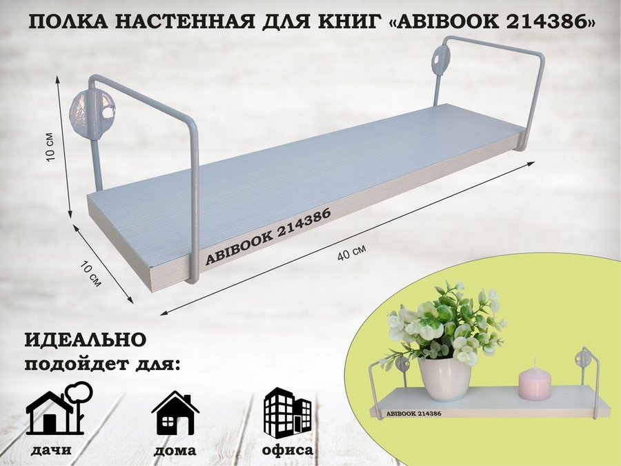 В корзину Купить в 1 клик Полка настенная для сувениров 10x 60 см белый шагрень ABIBOOK-214390