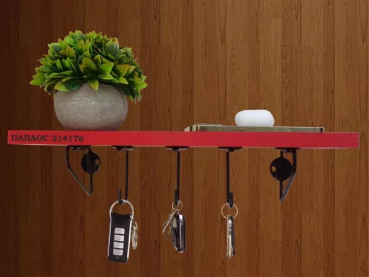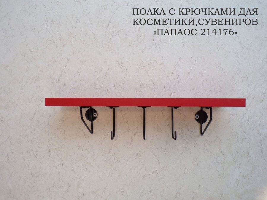 Ключница, полка с крючками в прихожую 40х10 см, высота 9 см, черный "ПАПАОС 214176" красный