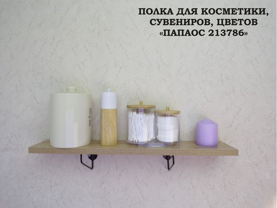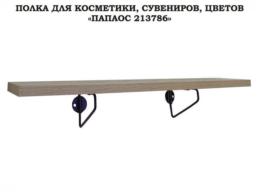 Полка для косметики, сувениров, цветов, 54х10 см, высота 9 см, черный "ПАПАОС 213786" дуб сонома