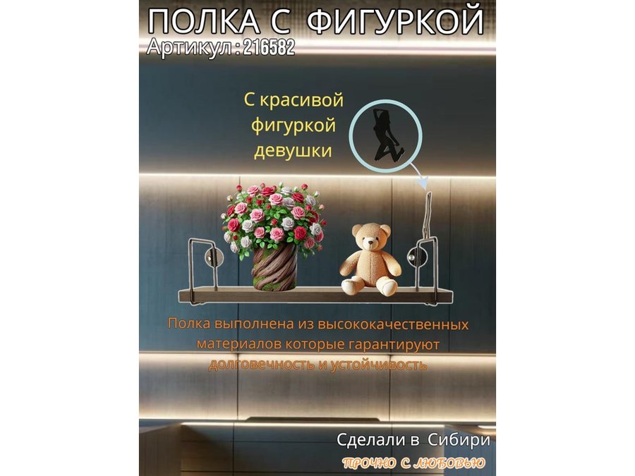 Интересная полка с фигуркой, позволит разнообразить интерьер, сделать его непохожим, уникальным, запоминающимся.