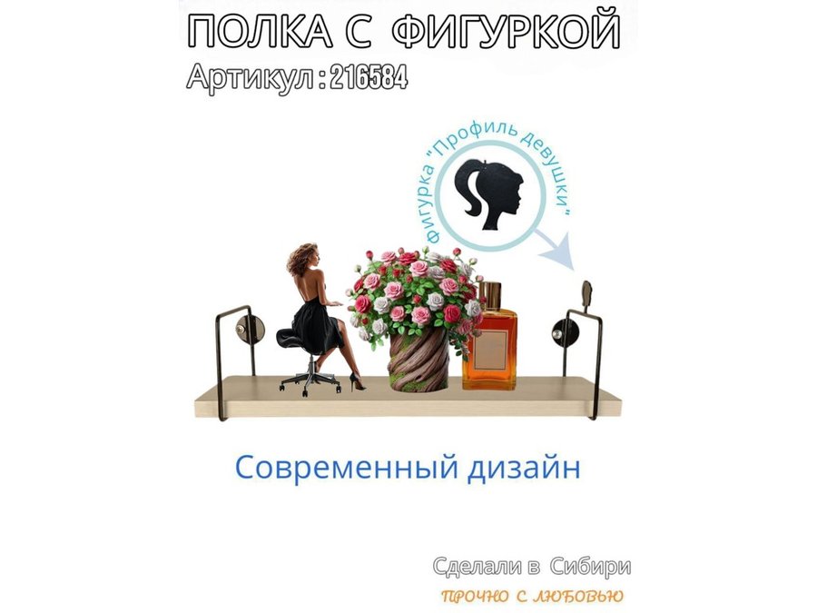 Полка с фигуркой прически девушки "ABILOVE-216584" размер 10х40см ,черный ,сосна выбеленная