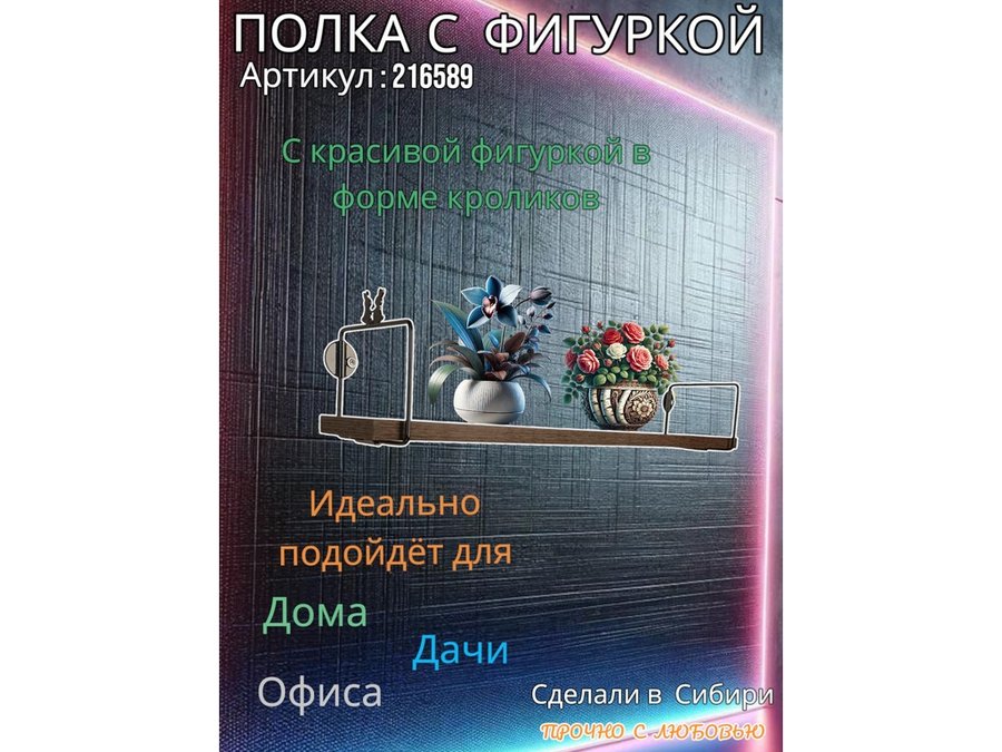 Полка с фигуркой кроликов "ABILOVE-216589" размер 10х60см ,черный ,венге