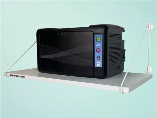 • Полка надежно крепится к стене при помощи анкеров или шурупов с дюбелями, на ней можно разместить принтер, бумагу и многое другое