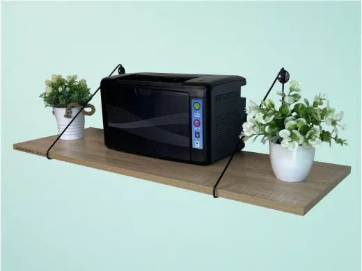• Полка надежно крепится к стене при помощи анкеров или шурупов с дюбелями, на ней можно разместить принтер, бумагу