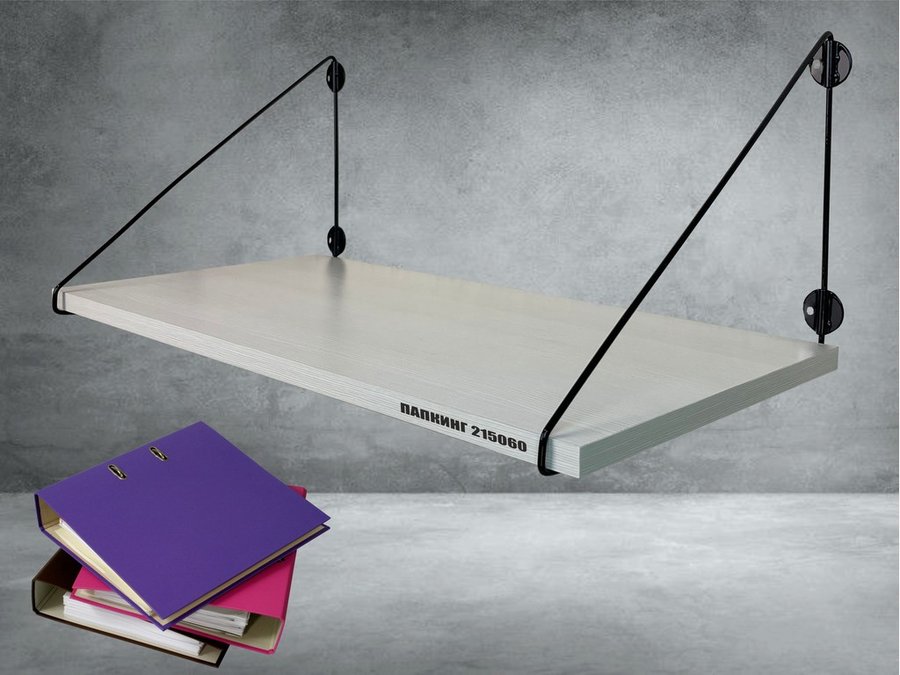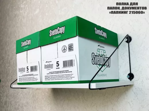 • Полка надежно крепится к стене при помощи анкеров или шурупов с дюбелями, на ней можно разместить папки, документы