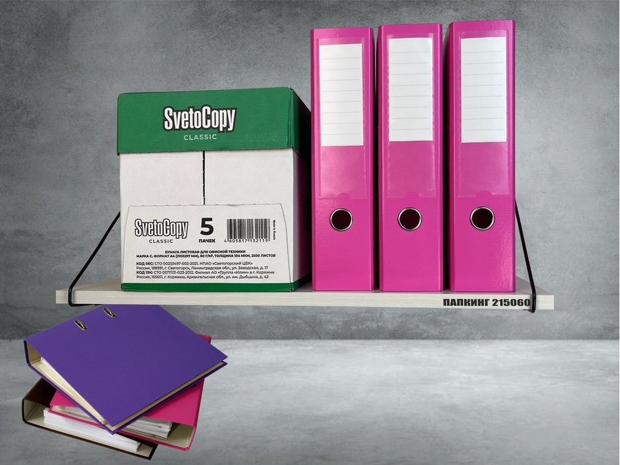 В корзину Купить в 1 клик Полка для папок и документов "ПАПКИНГ 215060" высота 26 см размер 60х30 см черный и сосна выбеленная