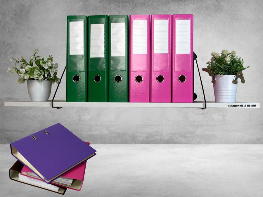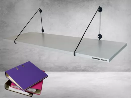 • Полка надежно крепится к стене при помощи анкеров или шурупов с дюбелями, на ней можно разместить папки, документы