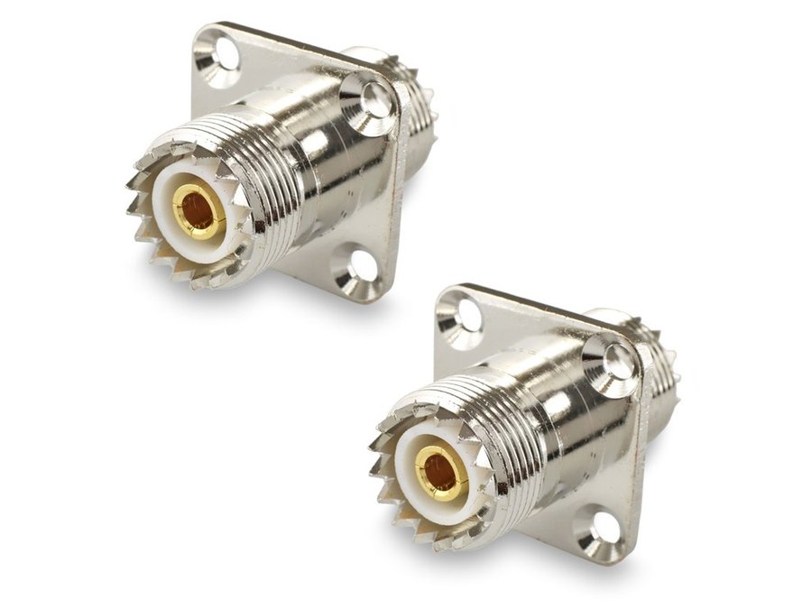 В корзину Купить в 1 клик Переходник PL259(female)-PL259(female) на корпус, фланец, 4 отв. диам. 3,4 мм 18х18 мм