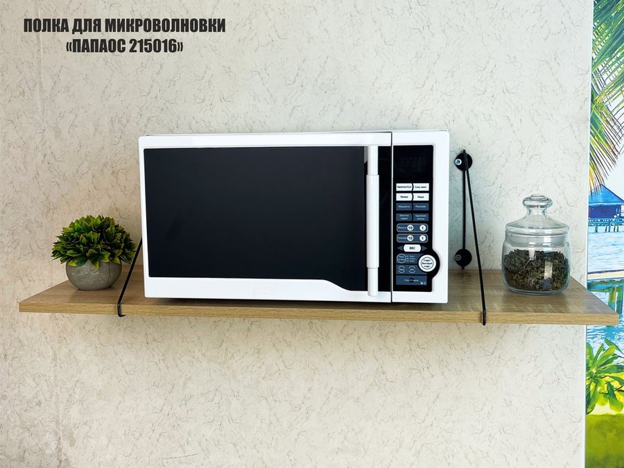 Полка для микроволновки "ПАПАОС 215016" высота 26 см размер 90х30 см черный и дуб сонома