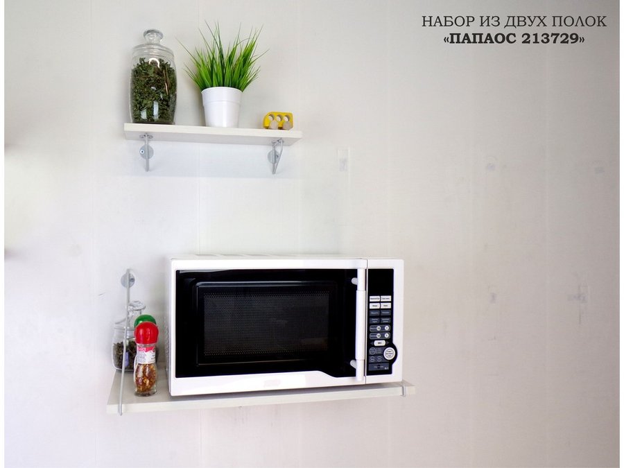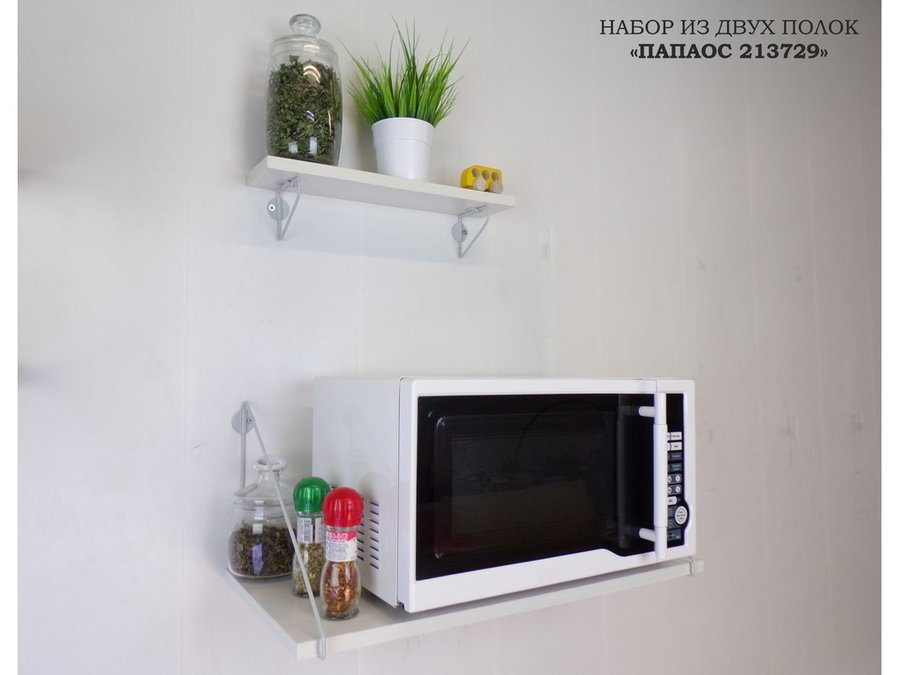 • Полки надежно крепятся к стене при помощи анкеров или шурупов с дюбелями, на них можно разместить микроволнрвую печь, кухонную технику, посуду, специи, сувениры, цветы, фотографии и многое другое