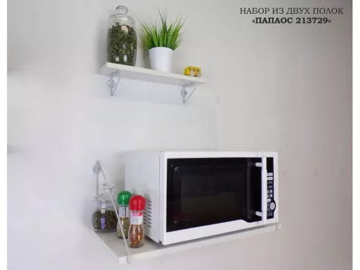 • Комплект из двух настенных полок имеет лаконичный и стильный дизайн, идеально подойдет для любого интерьера и существенно сэкономит место на кухне