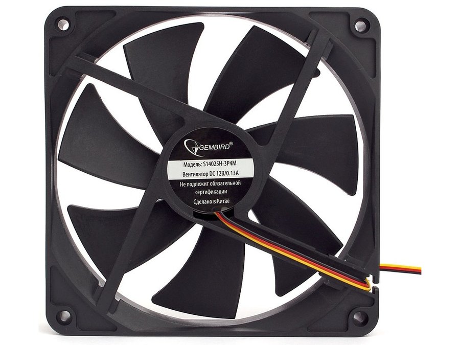 В корзину Купить в 1 клик Вентилятор +12В; 140х140х25мм; Gembird, гидрод., тихий, 3 pin/4pin Molex, провод 40 см
