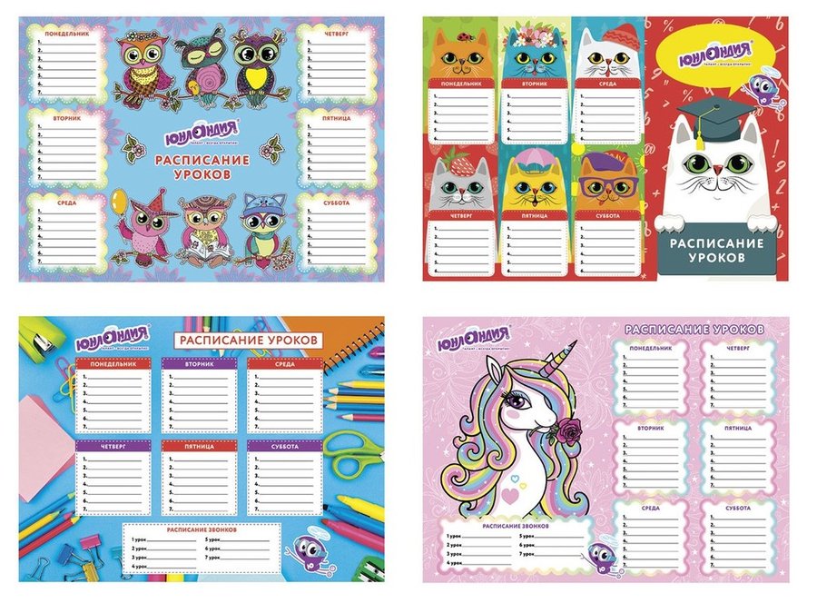 В корзину Купить в 1 клик Расписание уроков А4, для девочек "BR-73341", ассорти (4 вида)