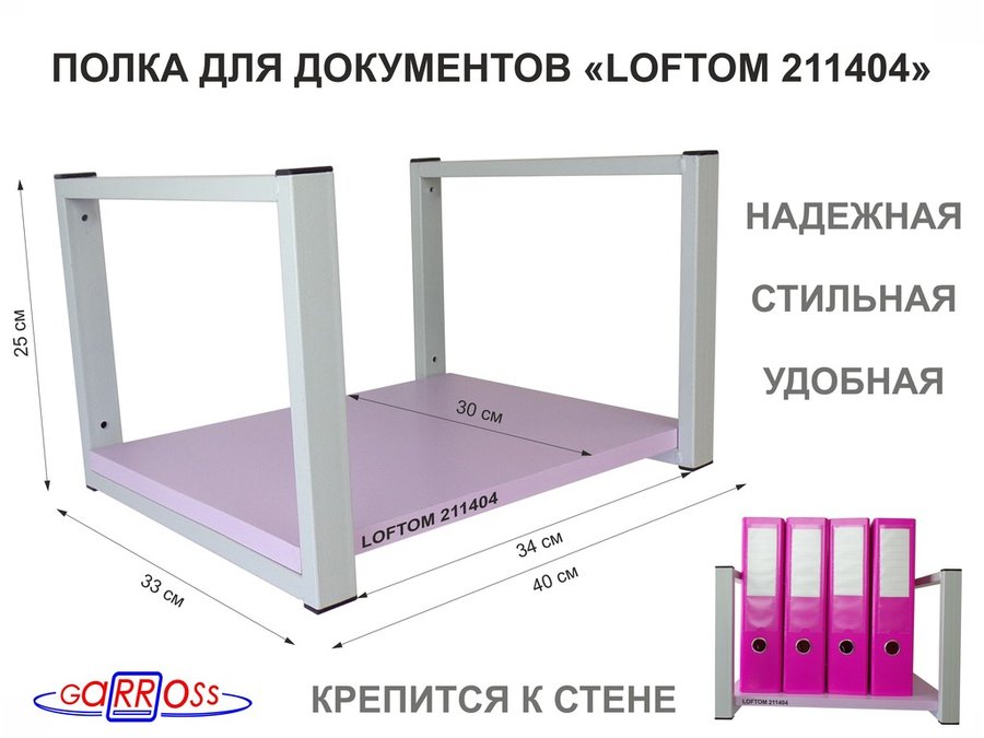 В корзину Купить в 1 клик Полка для документов к стене, высота 25см, размер 30х40см, серая "LOFTOM 211404" лаванда