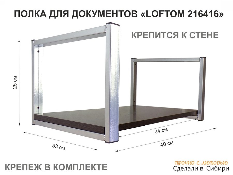 В корзину Купить в 1 клик Полка для документов к стене, высота 25см, размер 30х40см, сереб "LOFTOM 216416" венге
