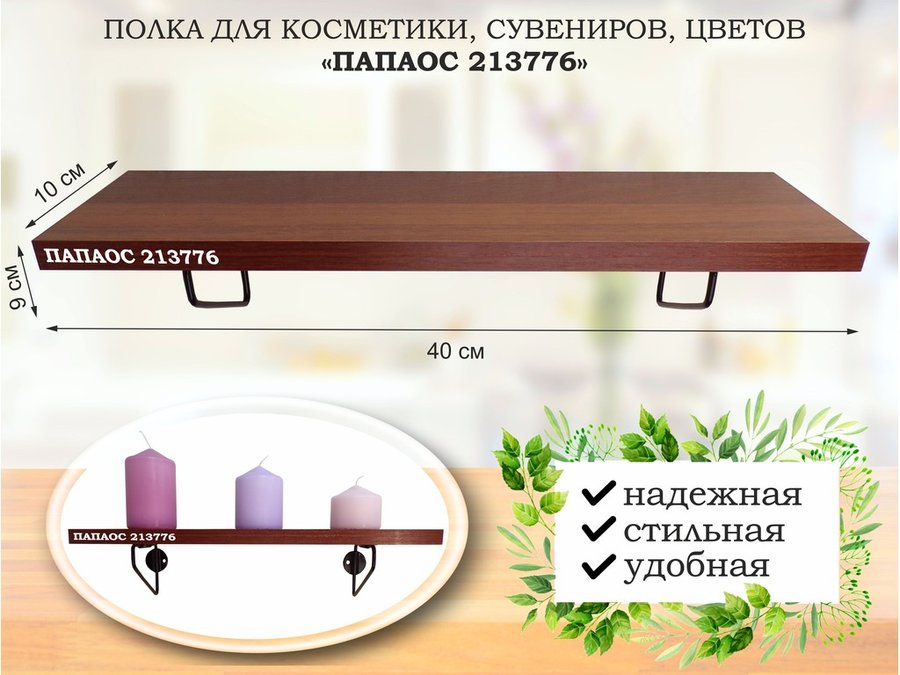 В корзину Купить в 1 клик Полка для косметики, сувениров, цветов, 40х10 см, высота 9 см, черный "ПАПАОС 213776" орех