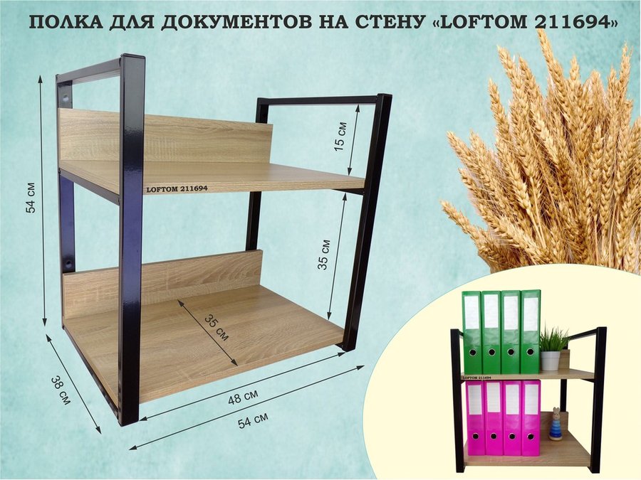 . Полки для папок-регистраторов и документов "LOFTOM" высота 54 см, полки 54х35см, 2 уровня