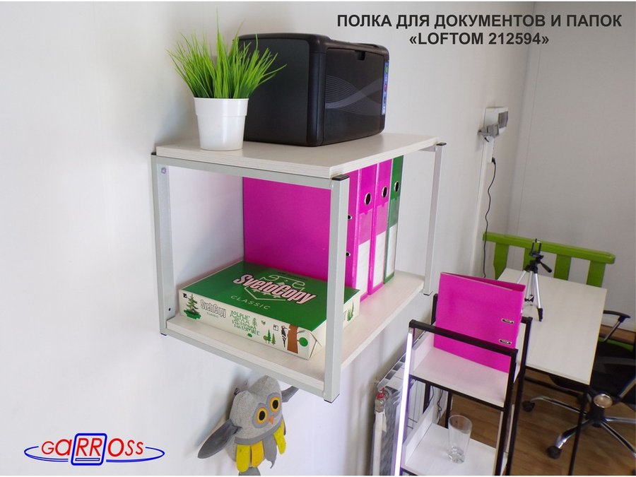 Полка для папок и документов, высота 38см серый "LOFTOM 212594"две полки 35х54см, сосна выбеленная