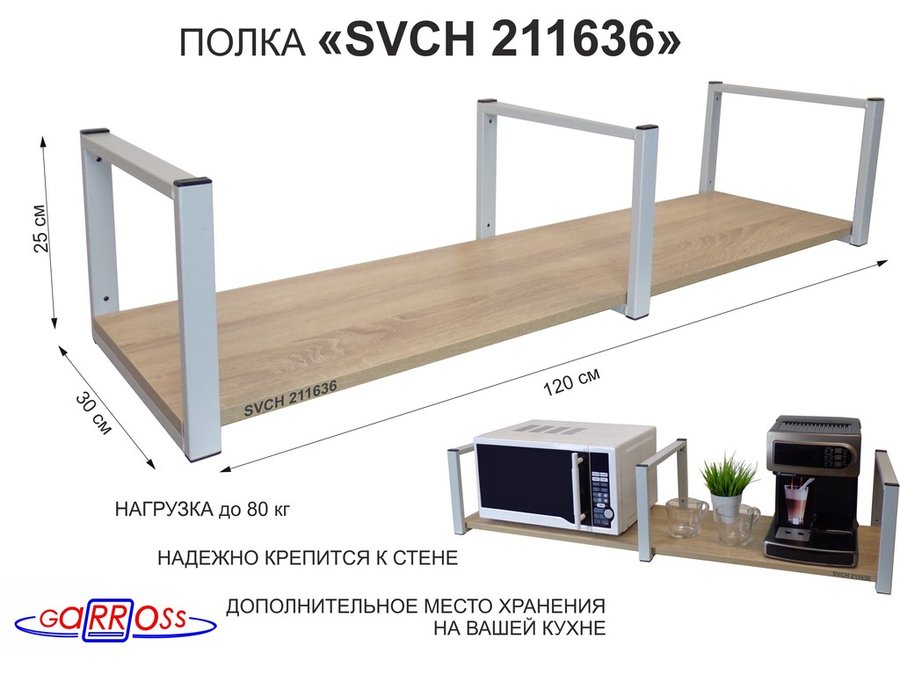 Полки для микроволновок "SVCH" кронштейны для СВЧ печей, высота 25см, 120х30см, 1 уровень