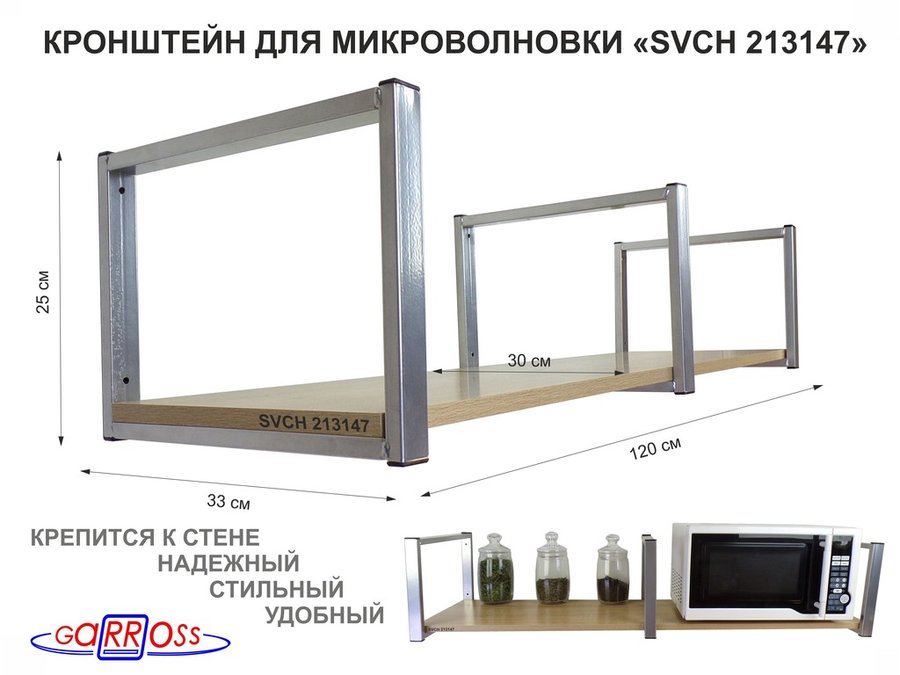 В корзину Купить в 1 клик Кронштейн для микроволновки, 25см сереб, 1 полка 30х120см "SVCH 213149", салат