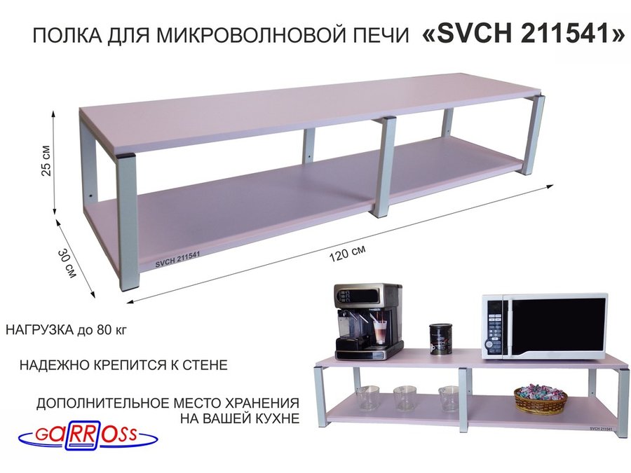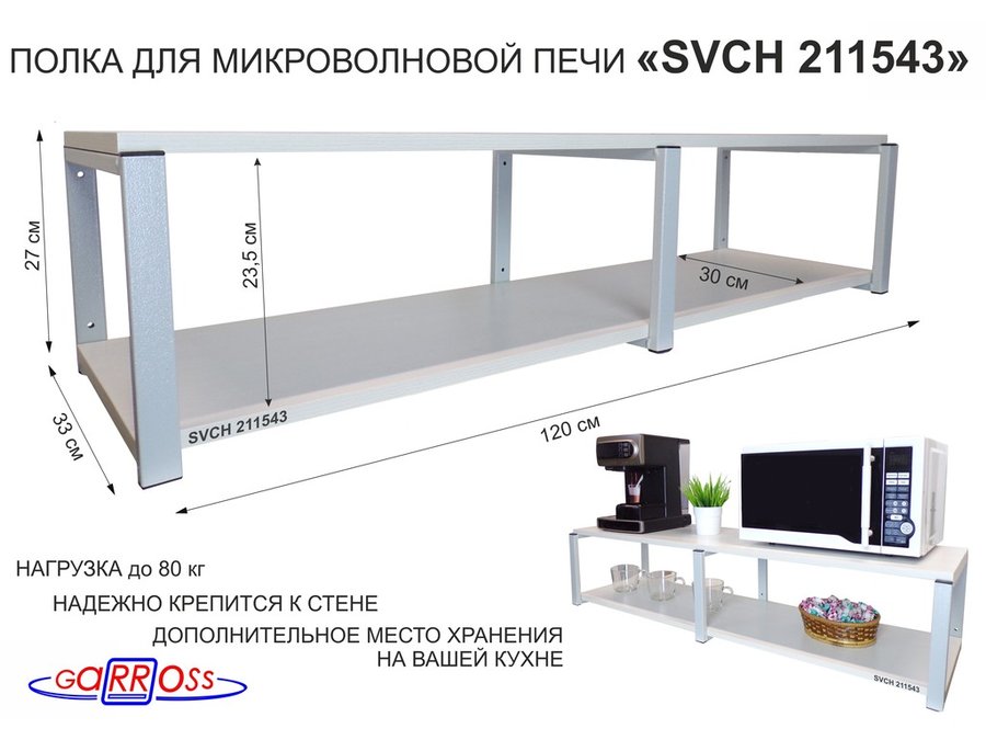 Полки для микроволновок "SVCH" кронштейны для СВЧ печей, высота 27см, 120х30см, 2 уровня