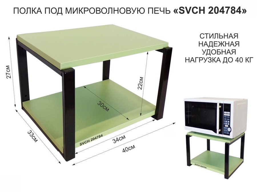 В корзину Купить в 1 клик Кронштейн для микроволновки, 27см чёрный "SVCH 204784" под микроволновую печь, полка 30х40,салатовый