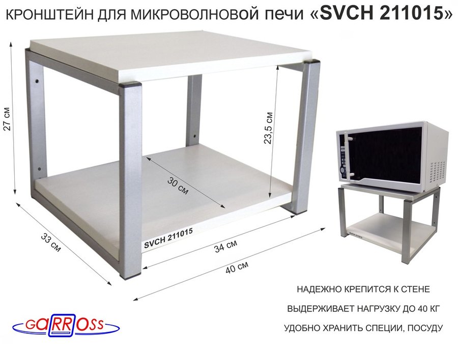 В корзину Купить в 1 клик Кронштейн для микроволновки, 27см серебр"SVCH 204855" полка под микроволновую печь, 30х40,салатов
